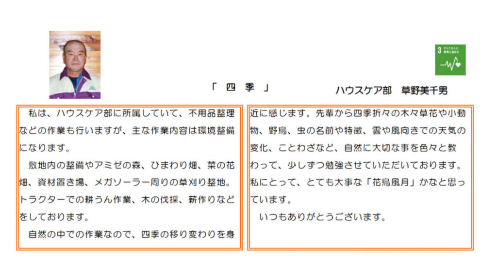 ひとりひとりの「思い」「生き方」「家族との約束」「地域への貢献」などを背景にしたすばらしい宣言内容です。