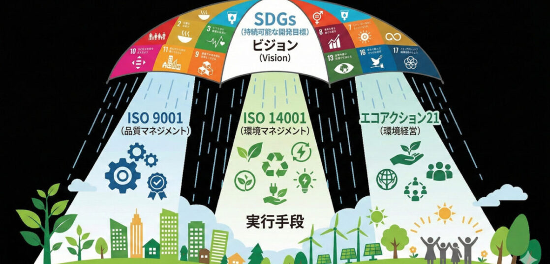 まずは自社のISOマニュアルとSDGs宣言を机に並べてみることから始めてみてください。