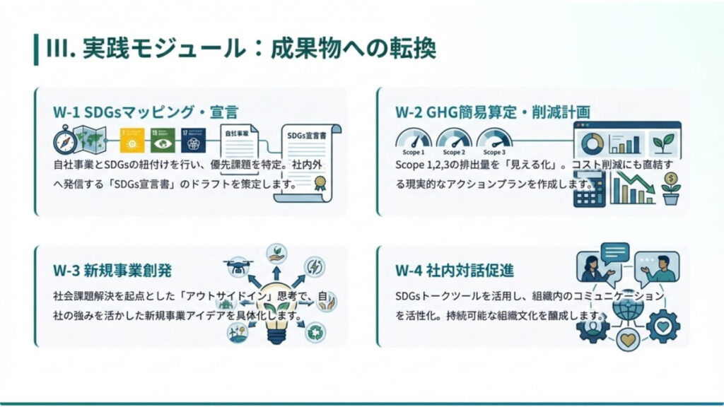 SDGsや脱炭素を「負担」ではなく「成長の機会」に変えるプログラムです。